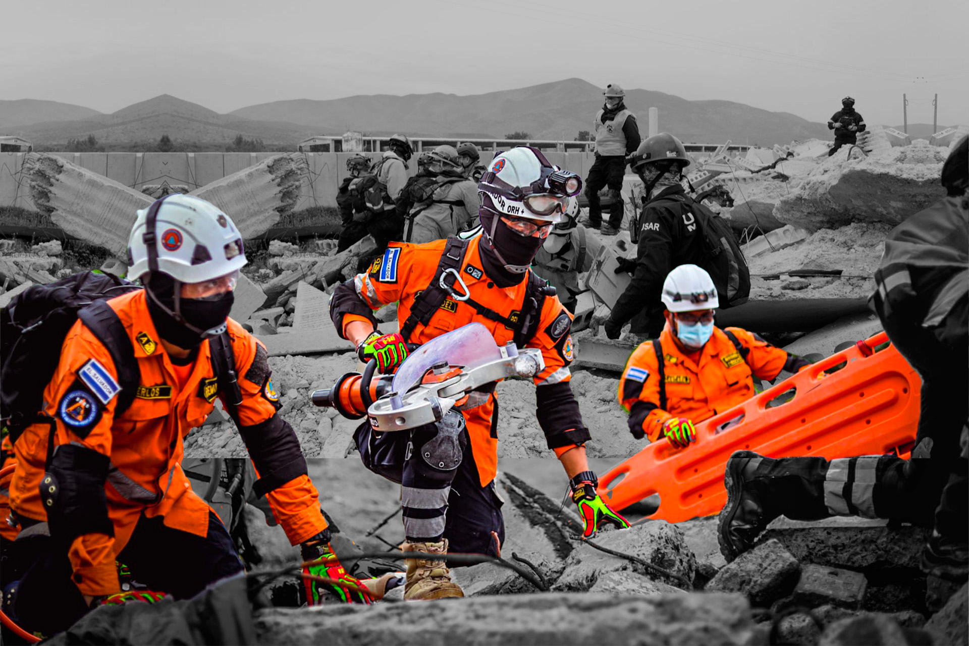 - Uso básico de herramientas y equipo de rescate, como cuerdas, lámparas, palancas, camillas y equipo de protección personal.